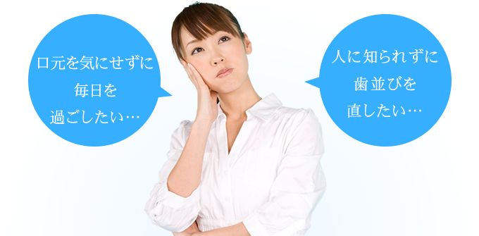 口もとは人の印象を左右するパーツでもあるため、歯並びが悪いことで、コンプレックスを感じておられる方もいらっしゃるのではないでしょうか。しかも矯正治療を受けるためには、一般的にブラケットとワイヤーの矯正装置を数年間にもわたってつけ続けなくてはいけません。